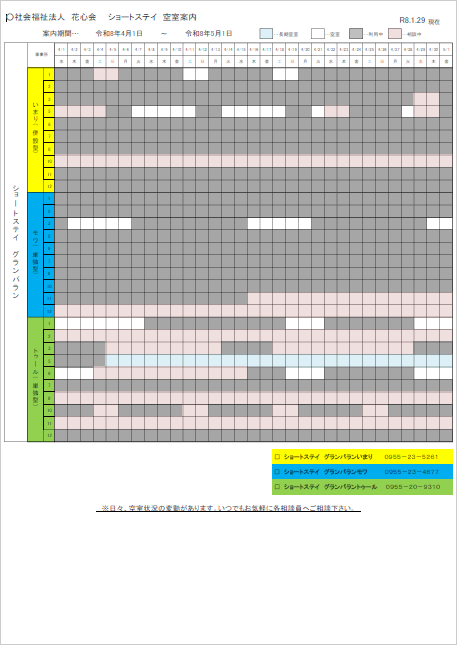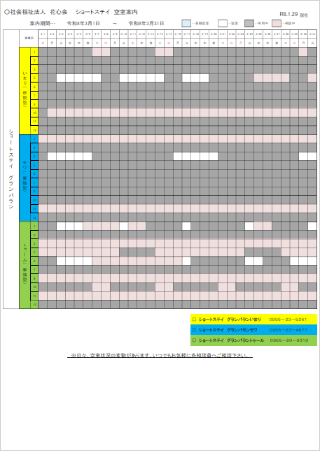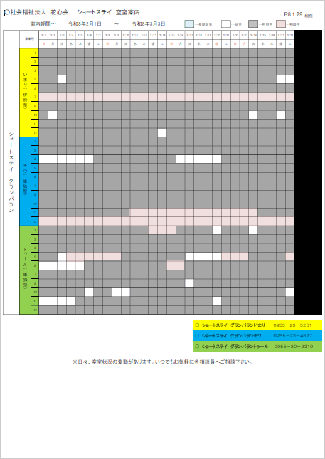 ショートステイ 空室案内